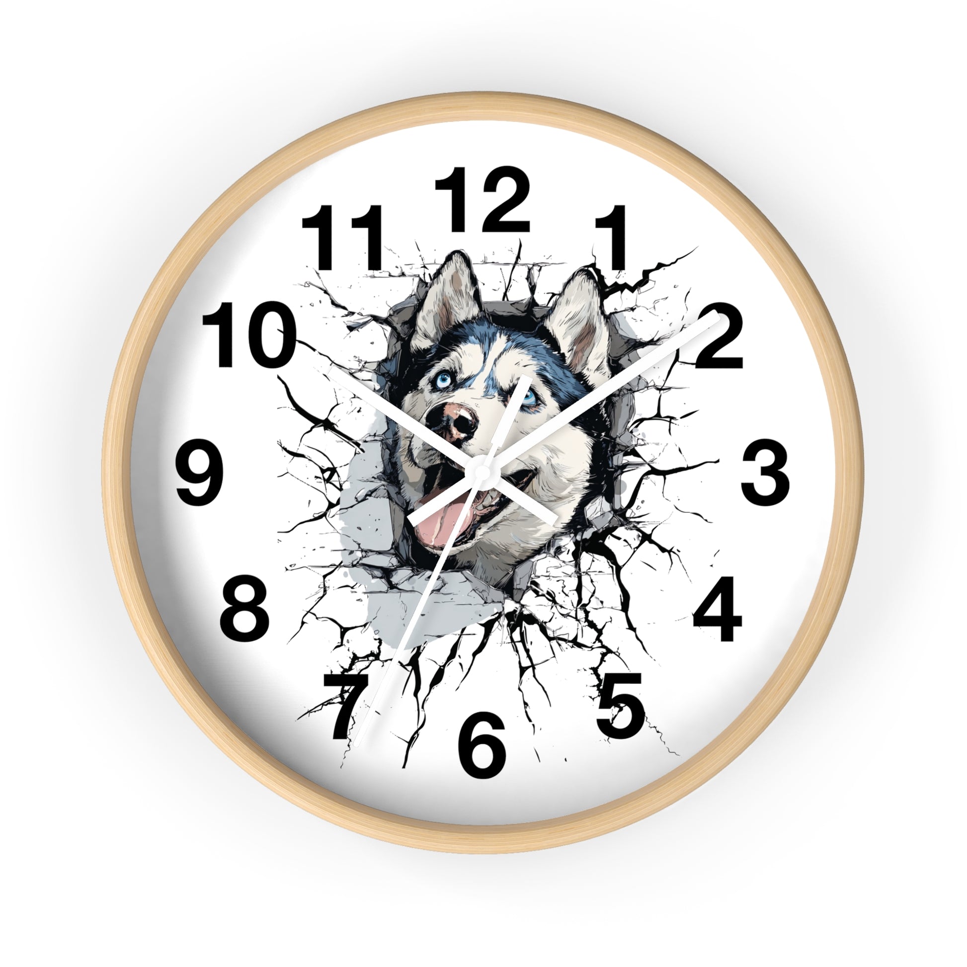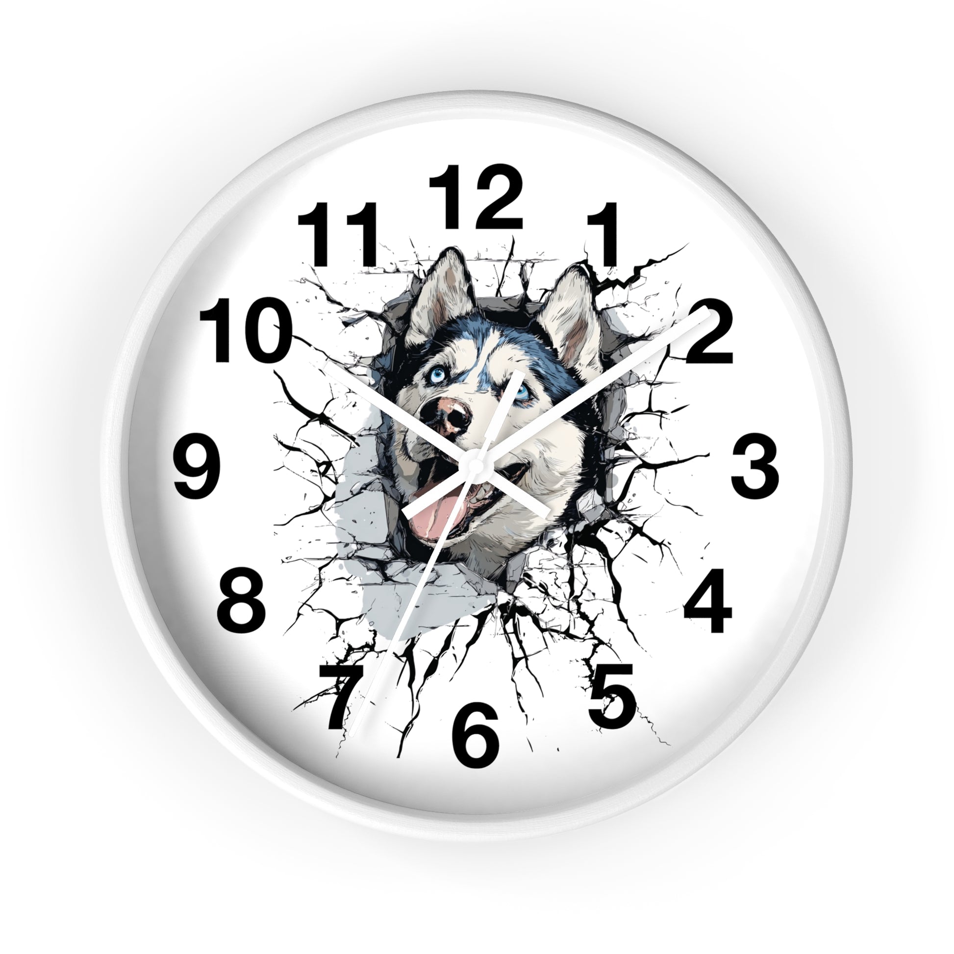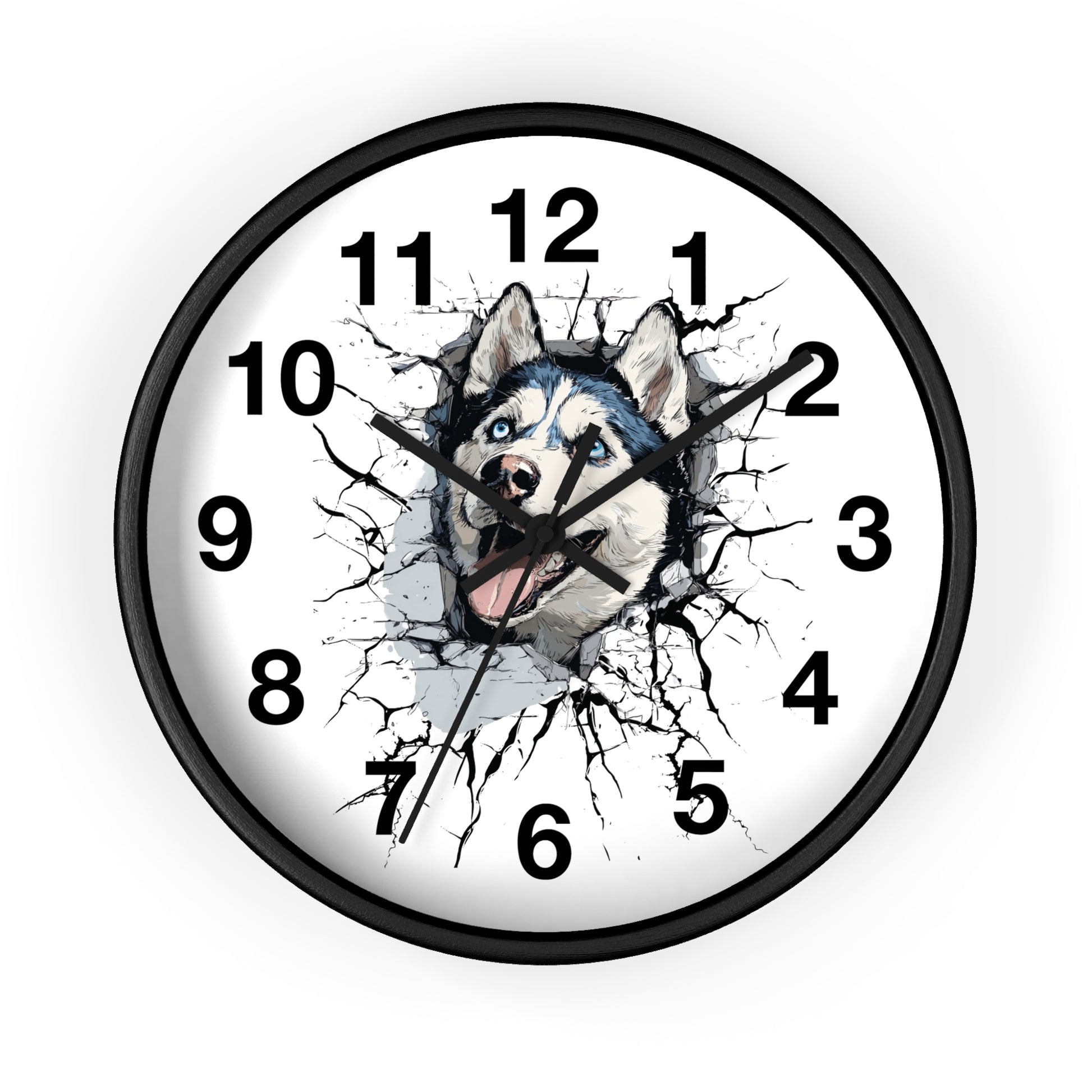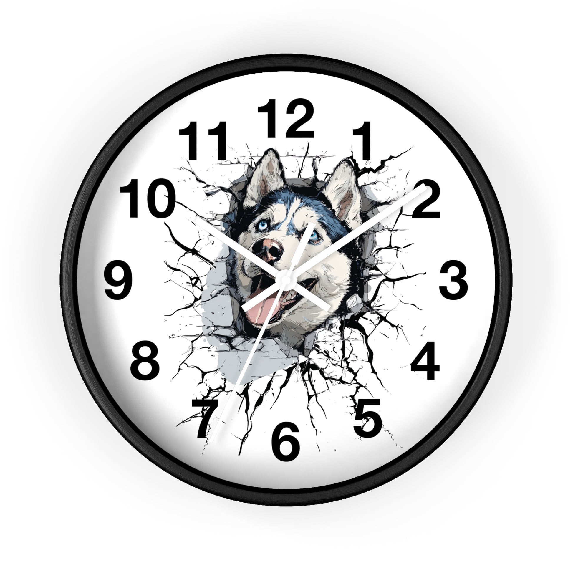 Husky Burst Wall Clock — Husky Busting Through a Clock Decorative Wall Clock