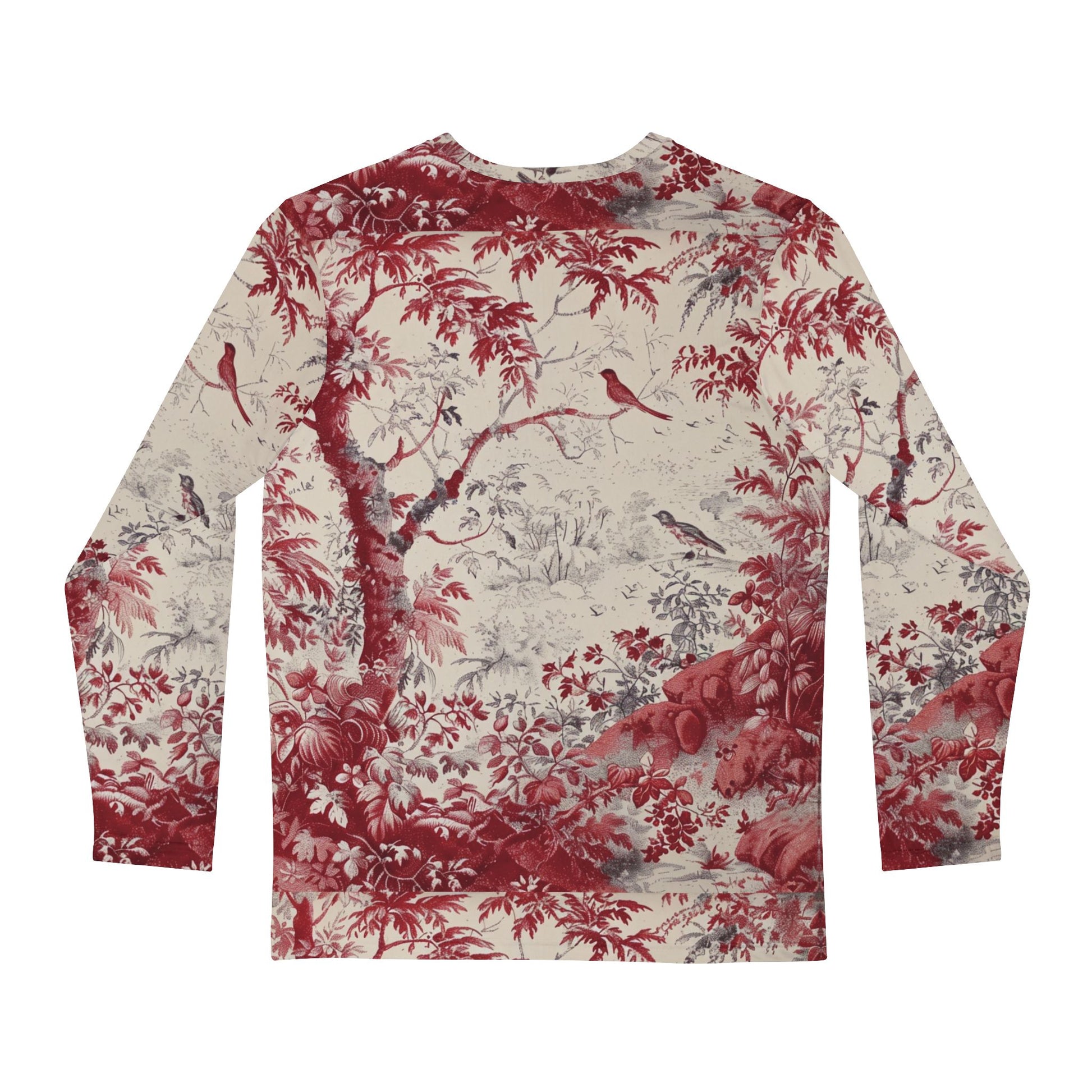 Long Sleeve Shirt — Vintage Red Toile Bird Print