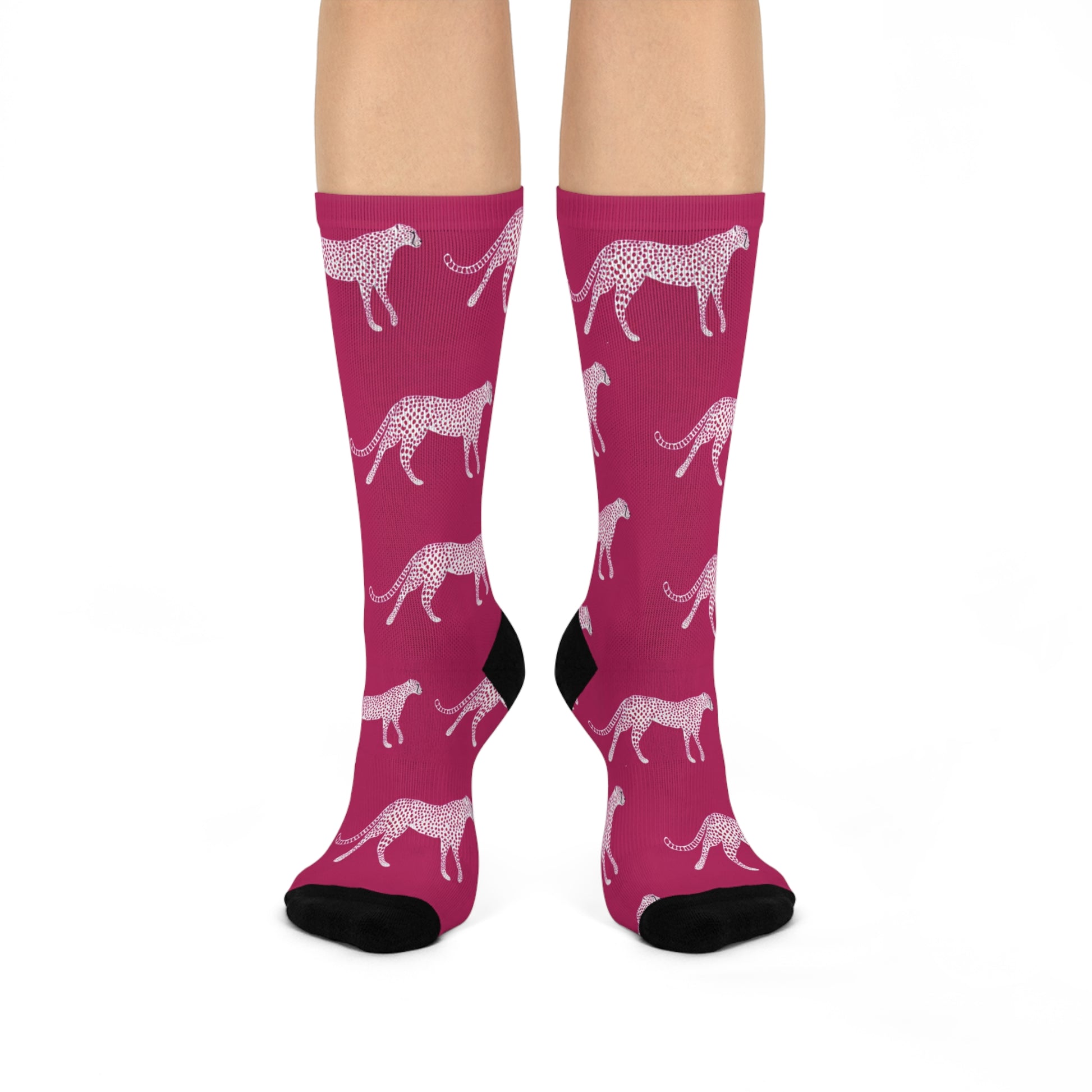 Pink Greyhound Crew Socks — Cushioned Athletic Socks with Running Dog Pattern