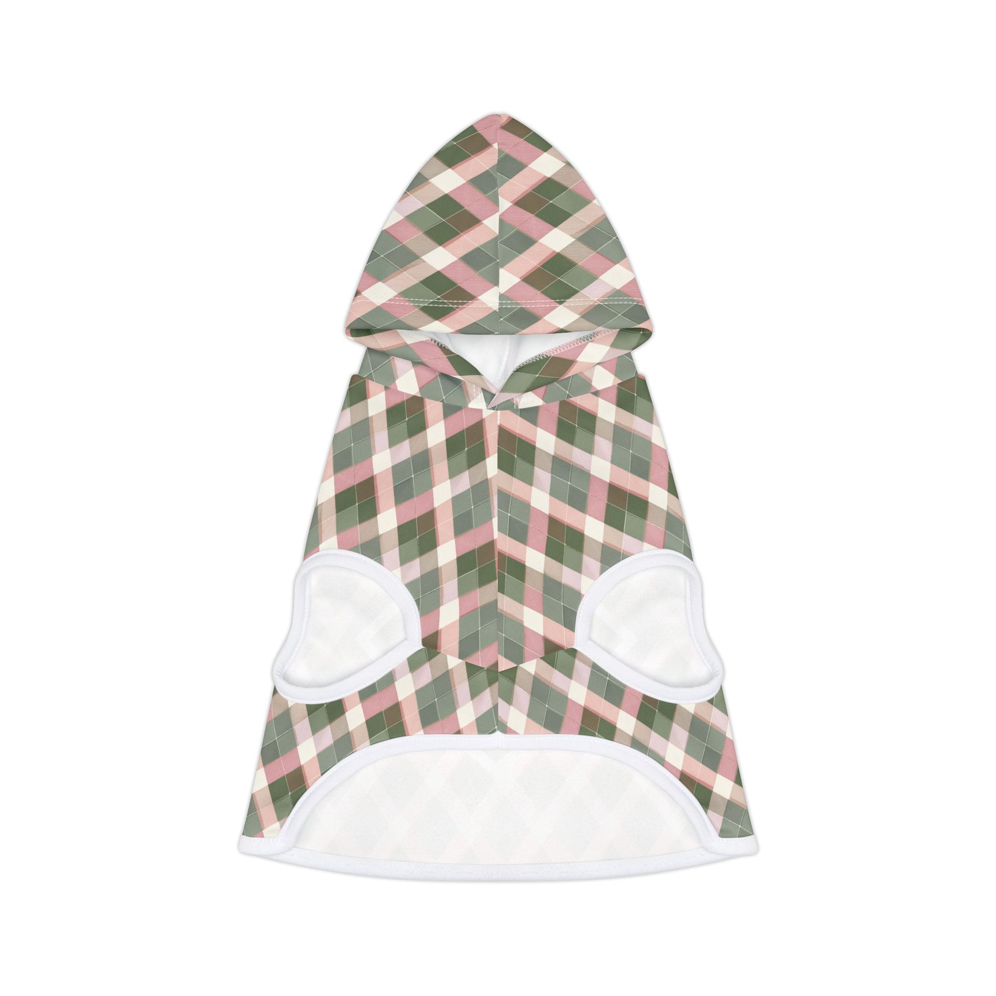 Plaid Monogram Pet Hoodie — Pink & Olive Diamond Plaid Dog Hoodie