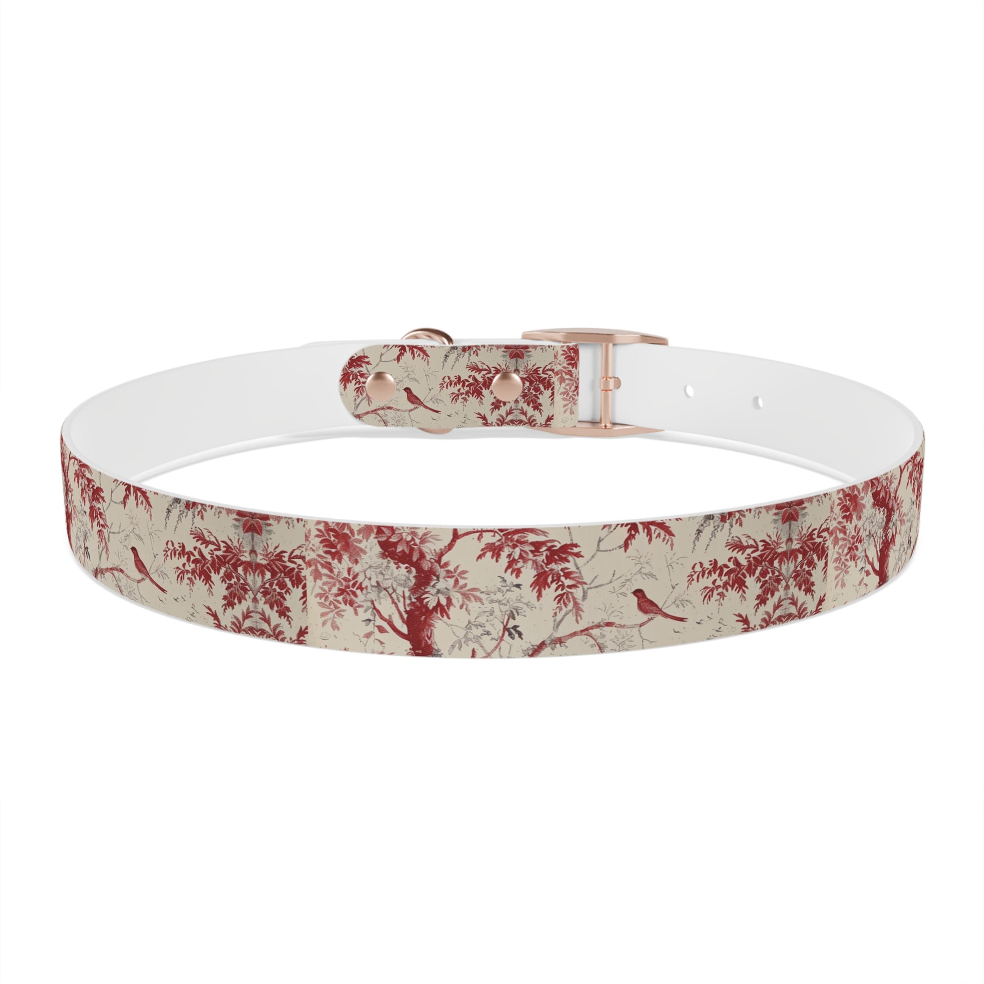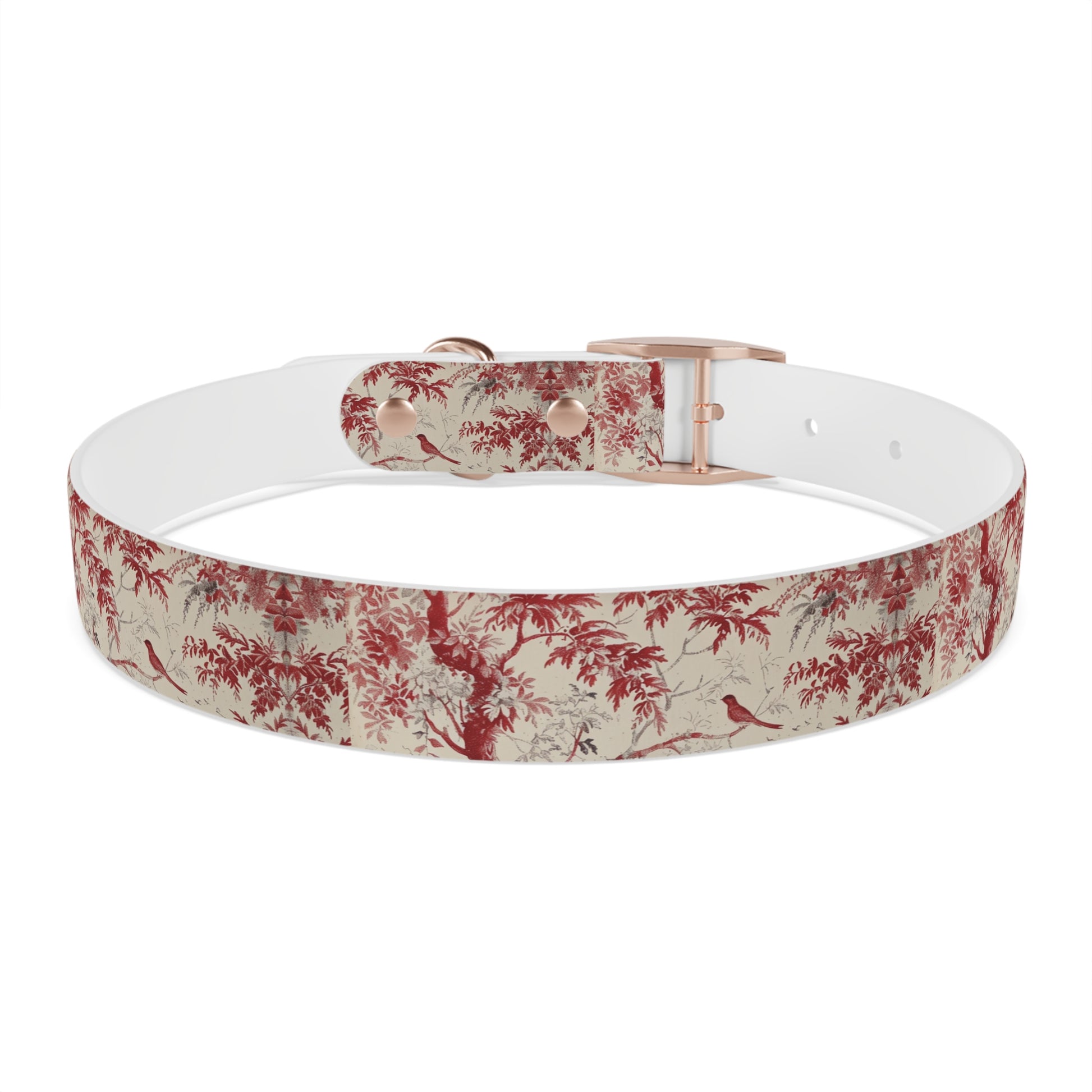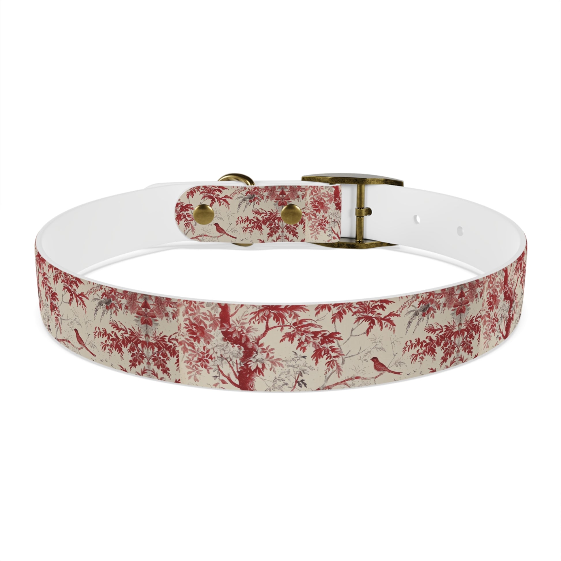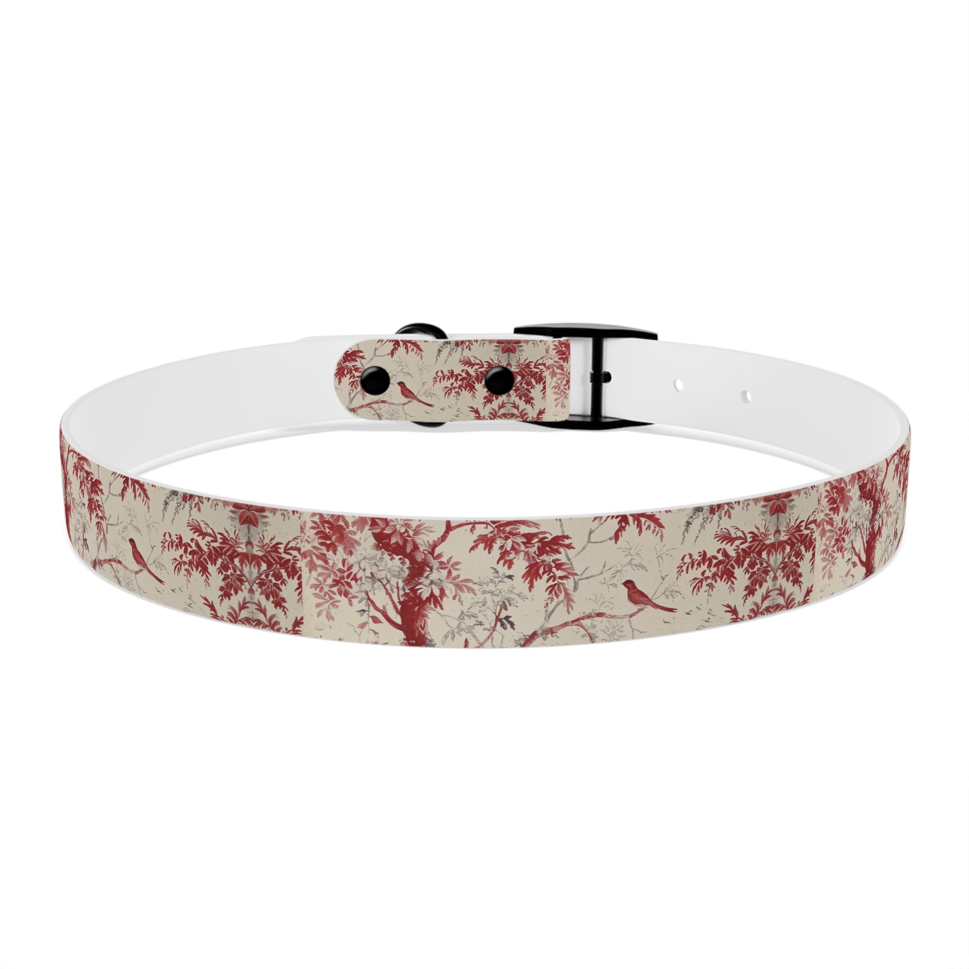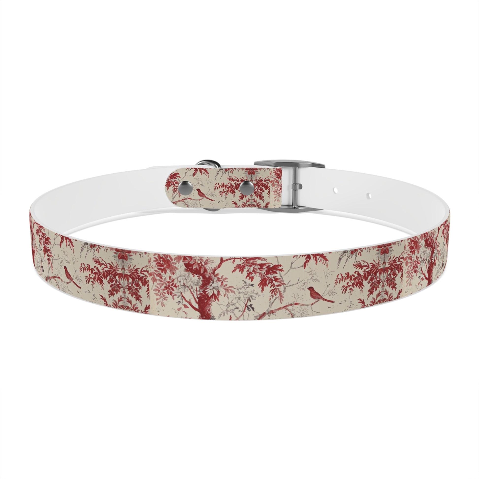 Toile Red Bird Dog Collar — Vintage Floral Pattern Pet Collar