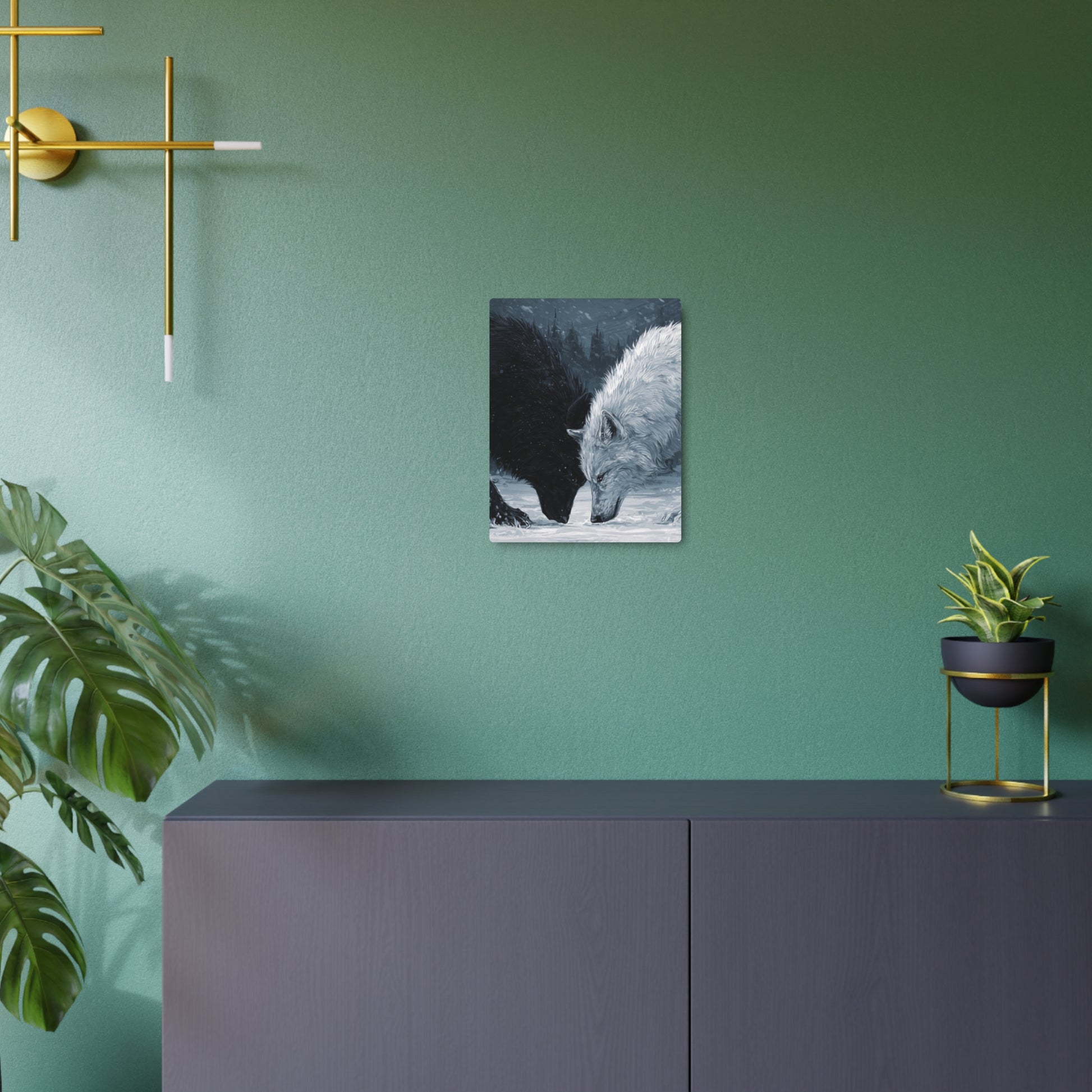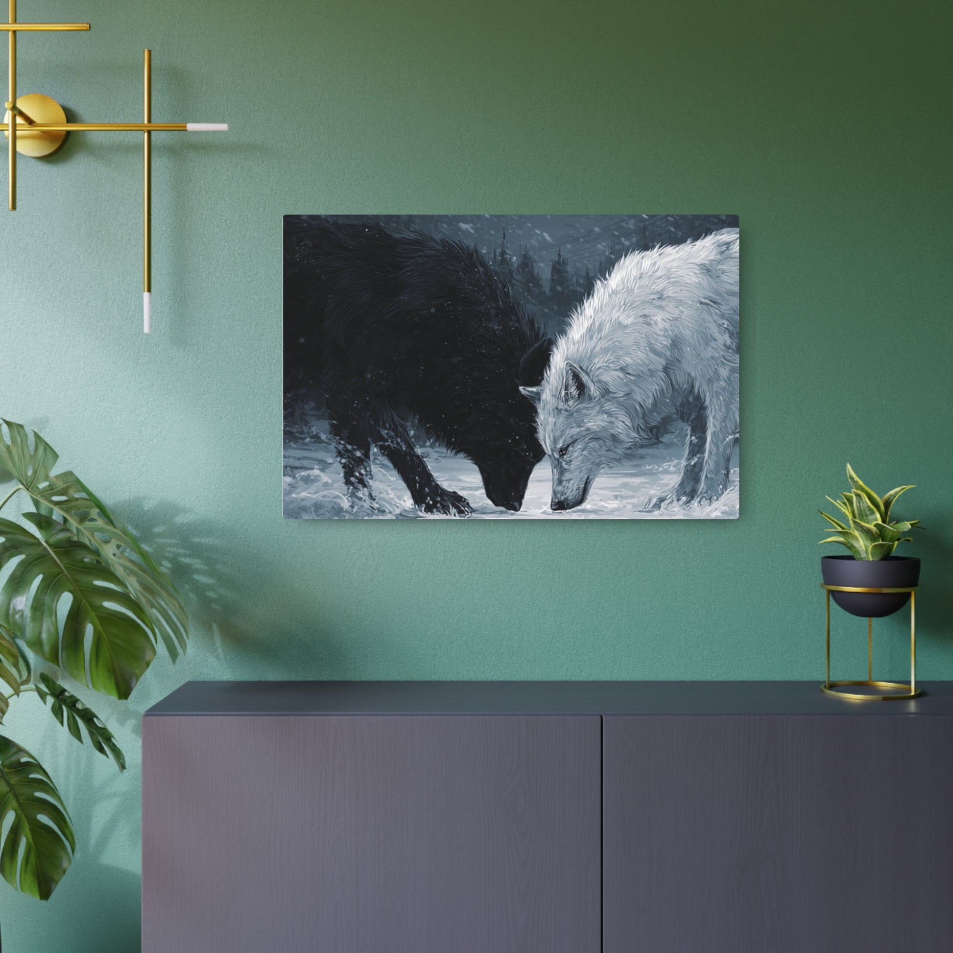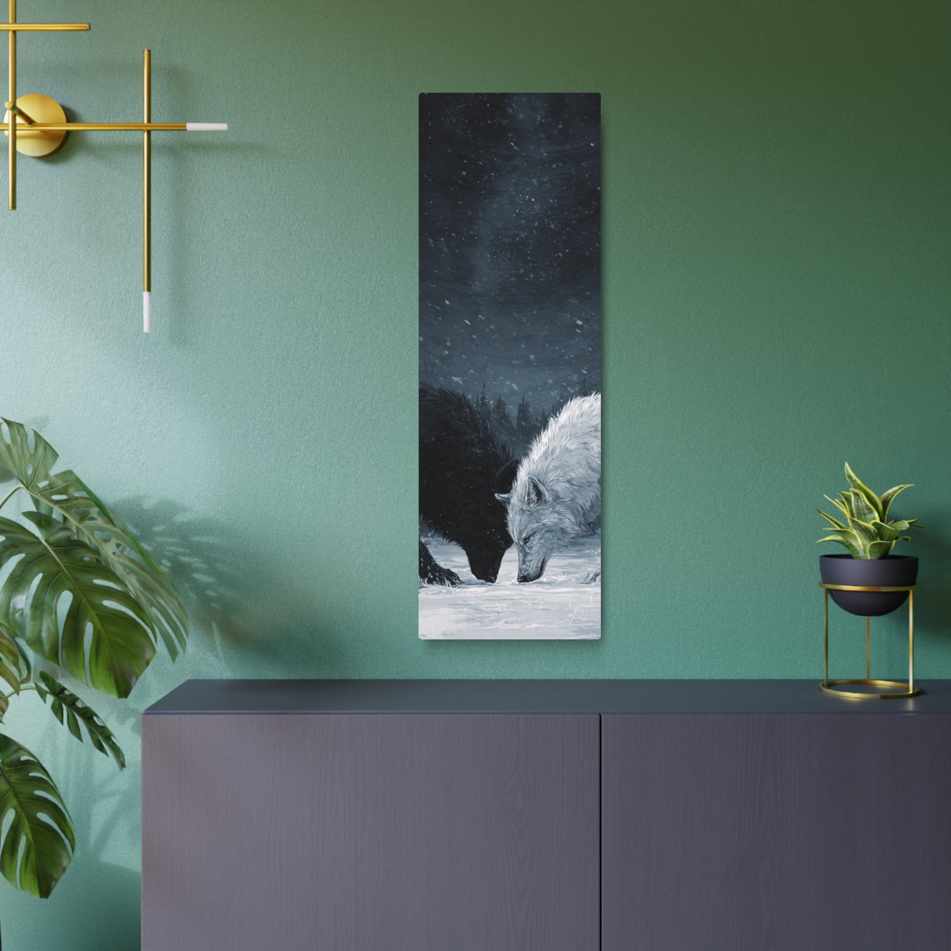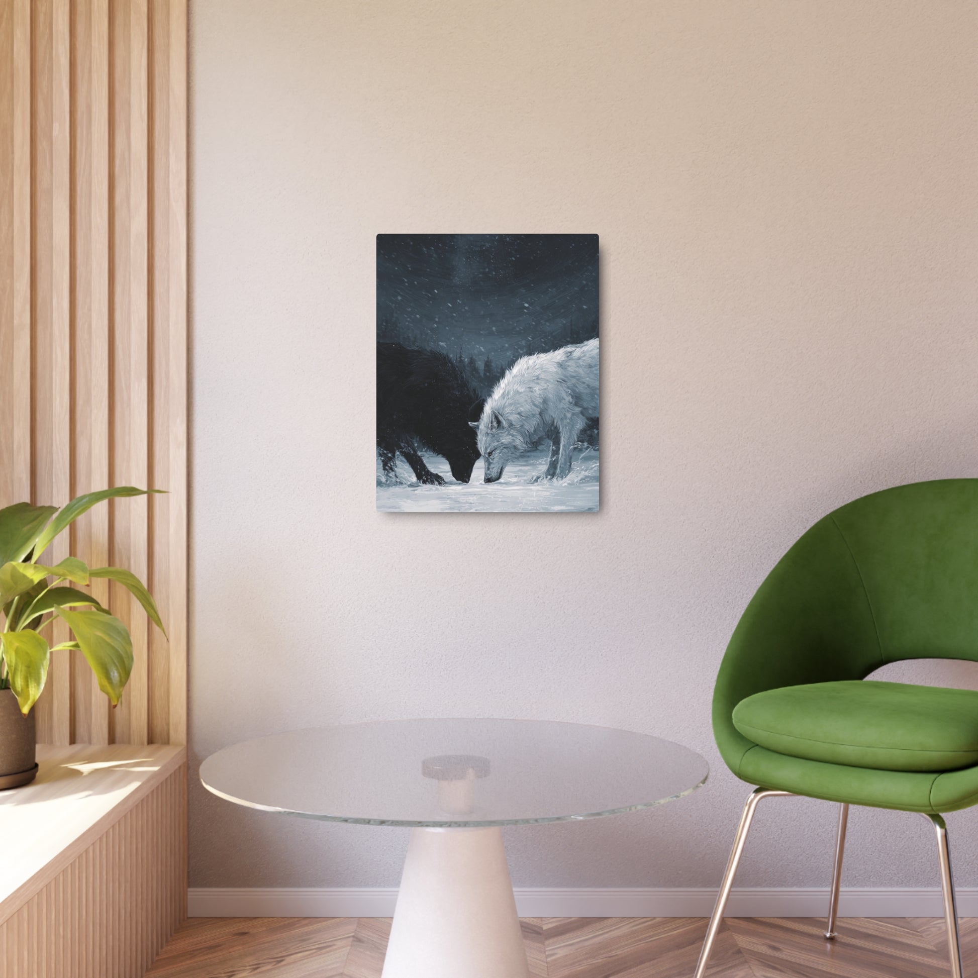 Twin Wolves Snow Scene Rustic Wall Decor