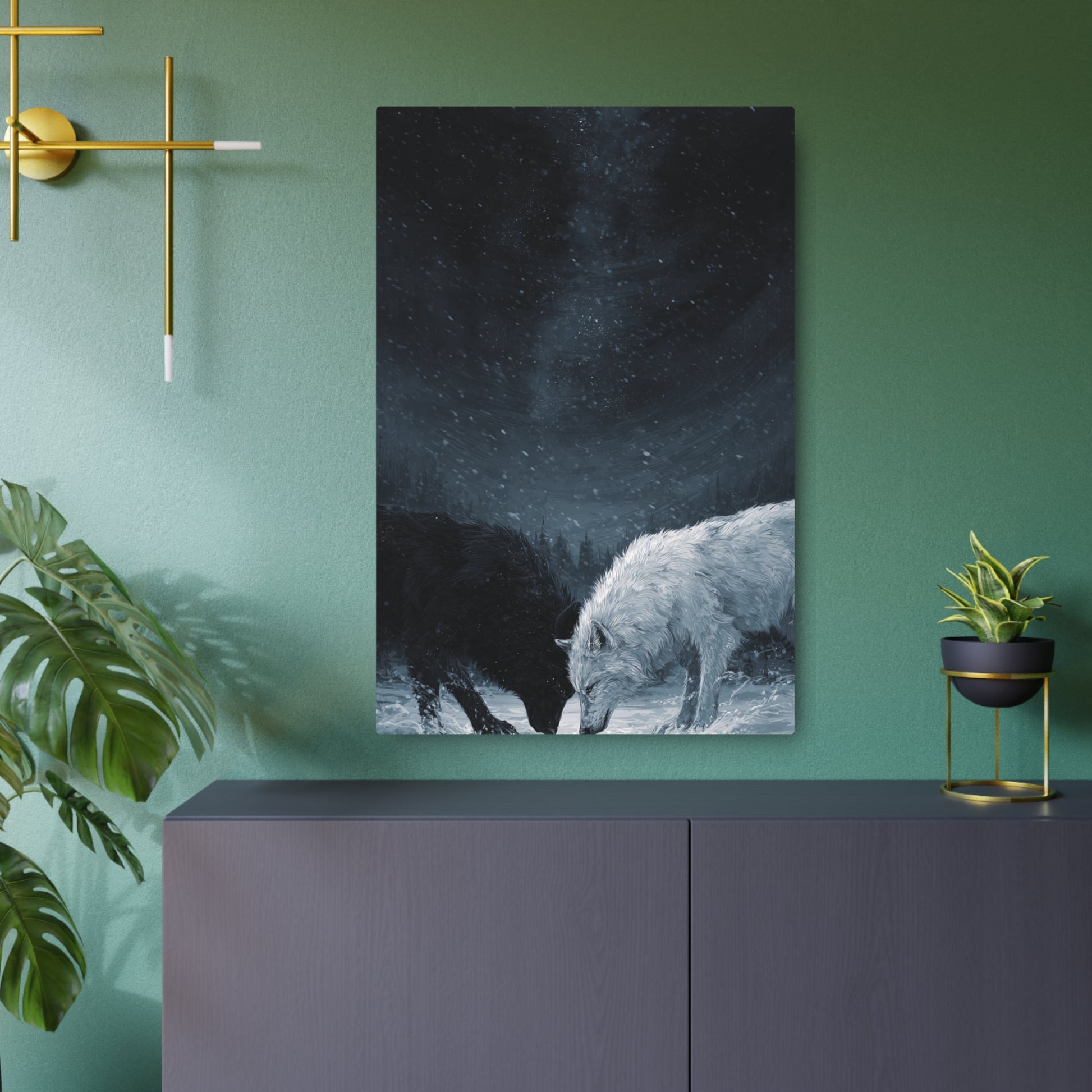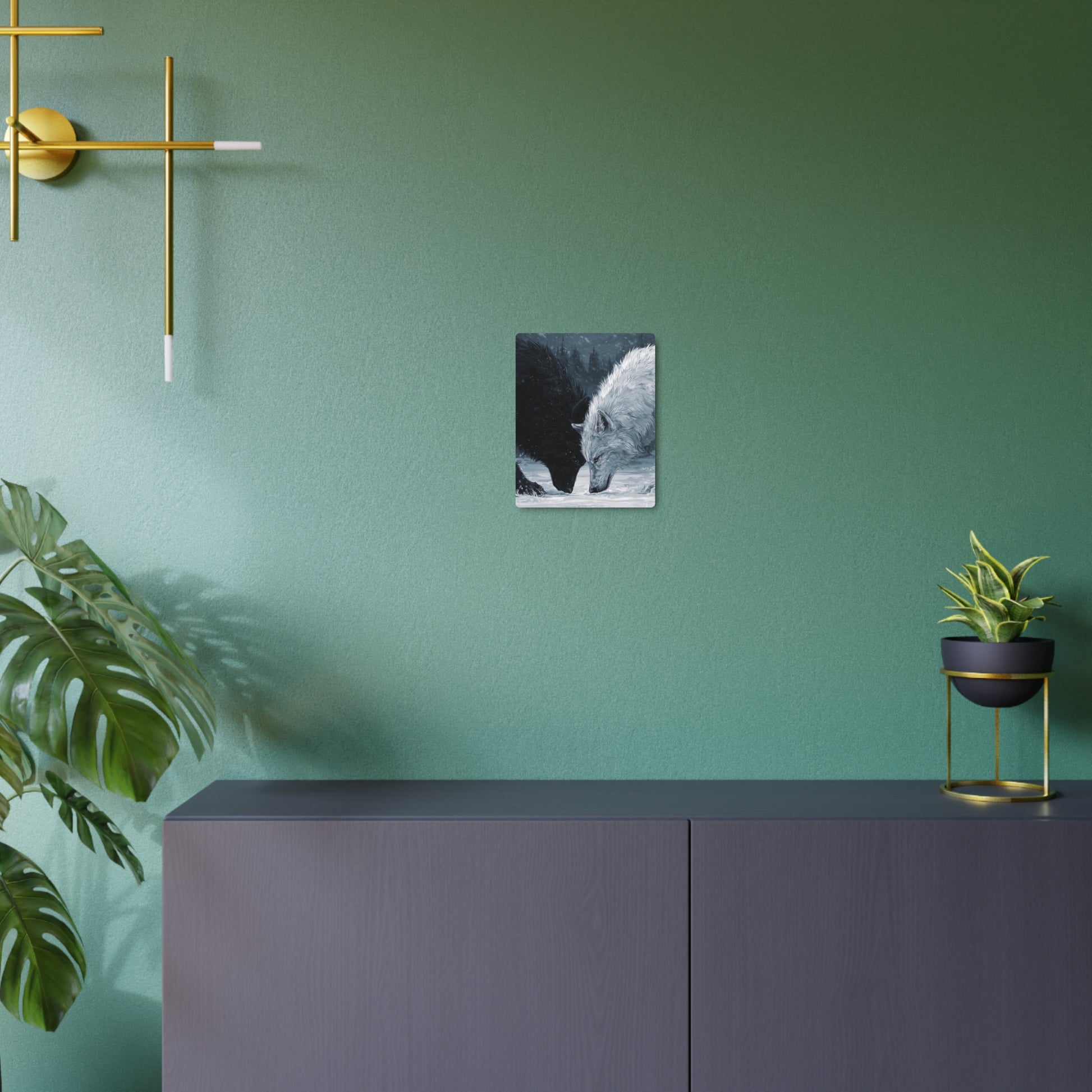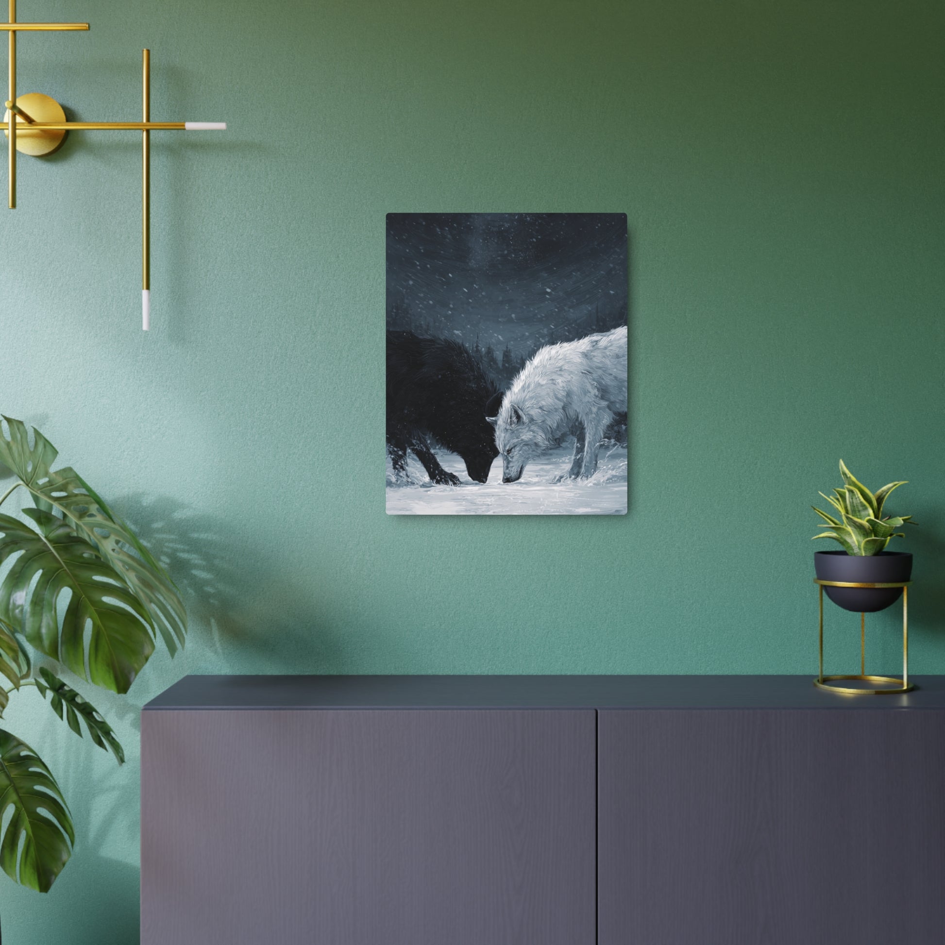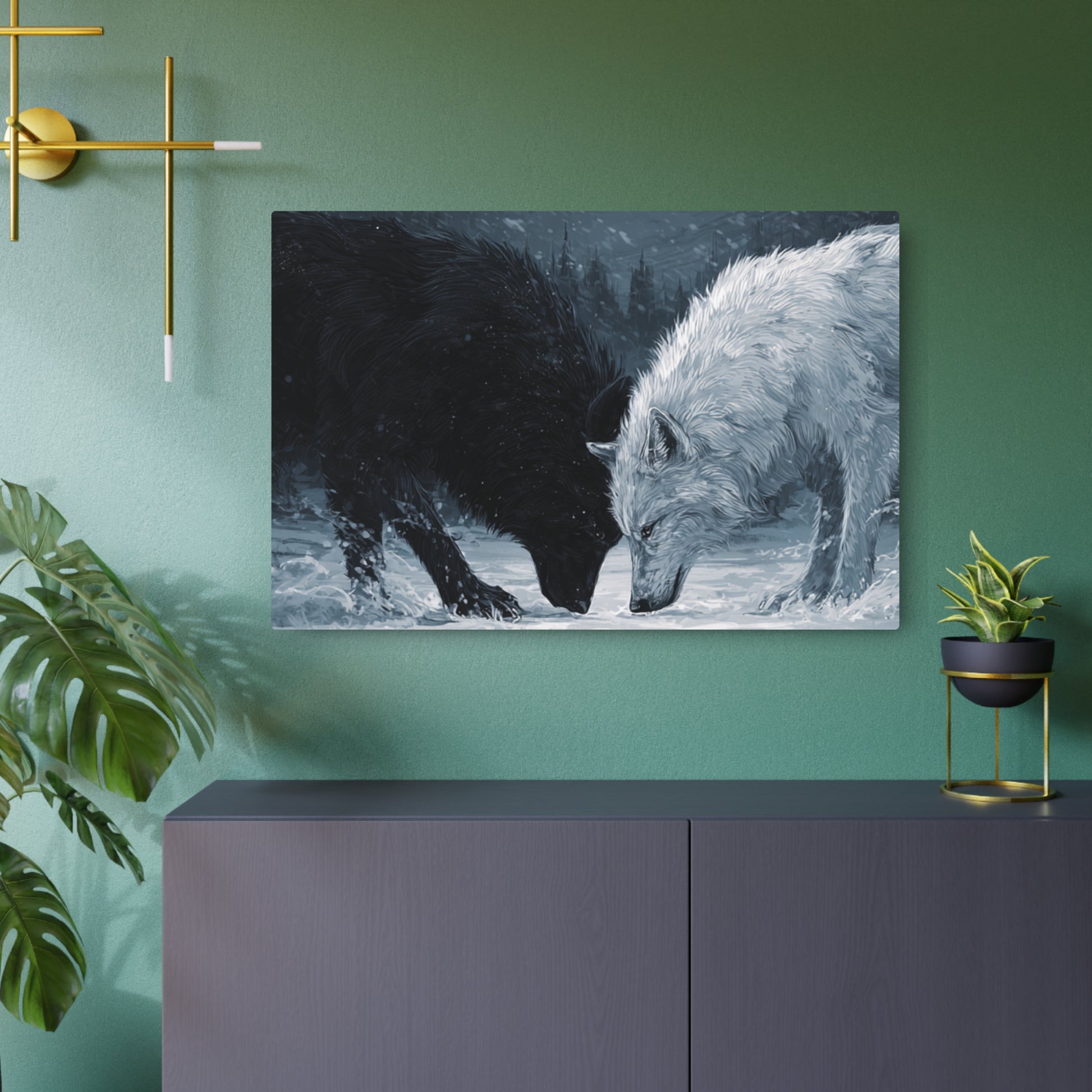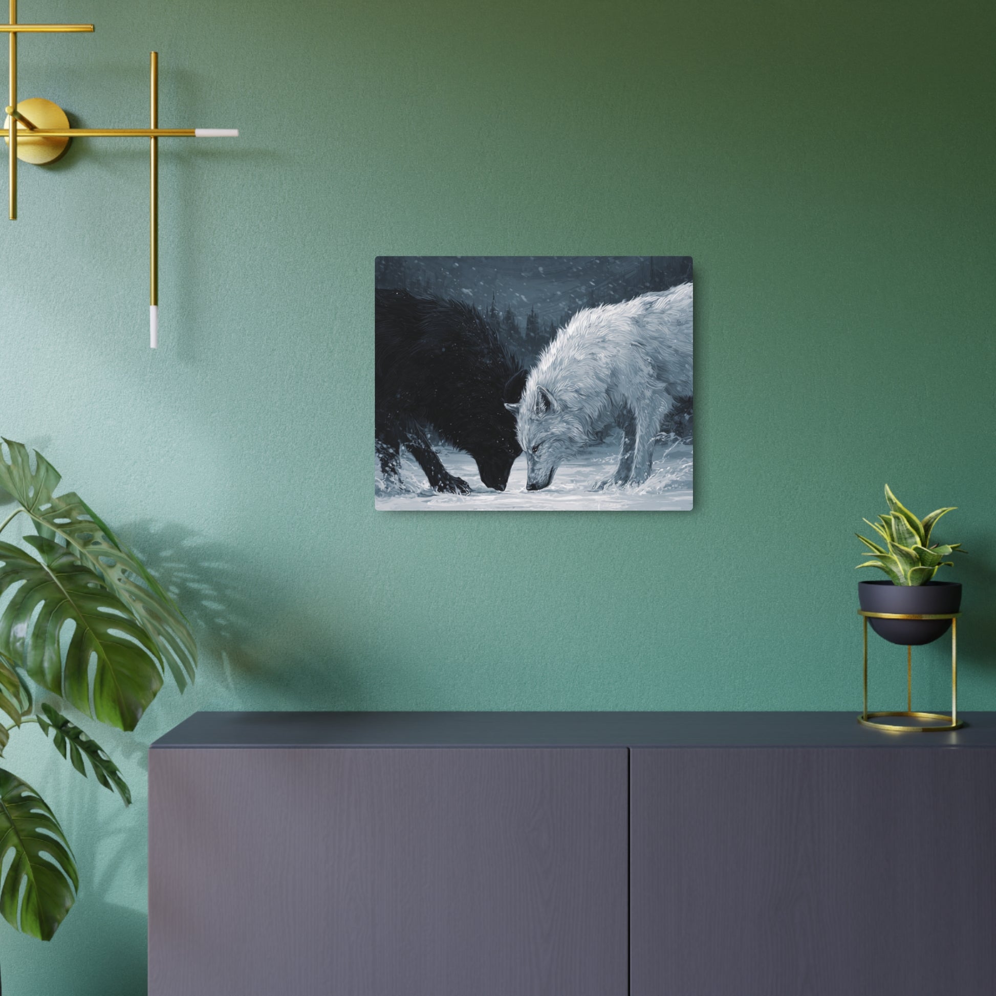 Twin Wolves Snow Scene Rustic Wall Decor