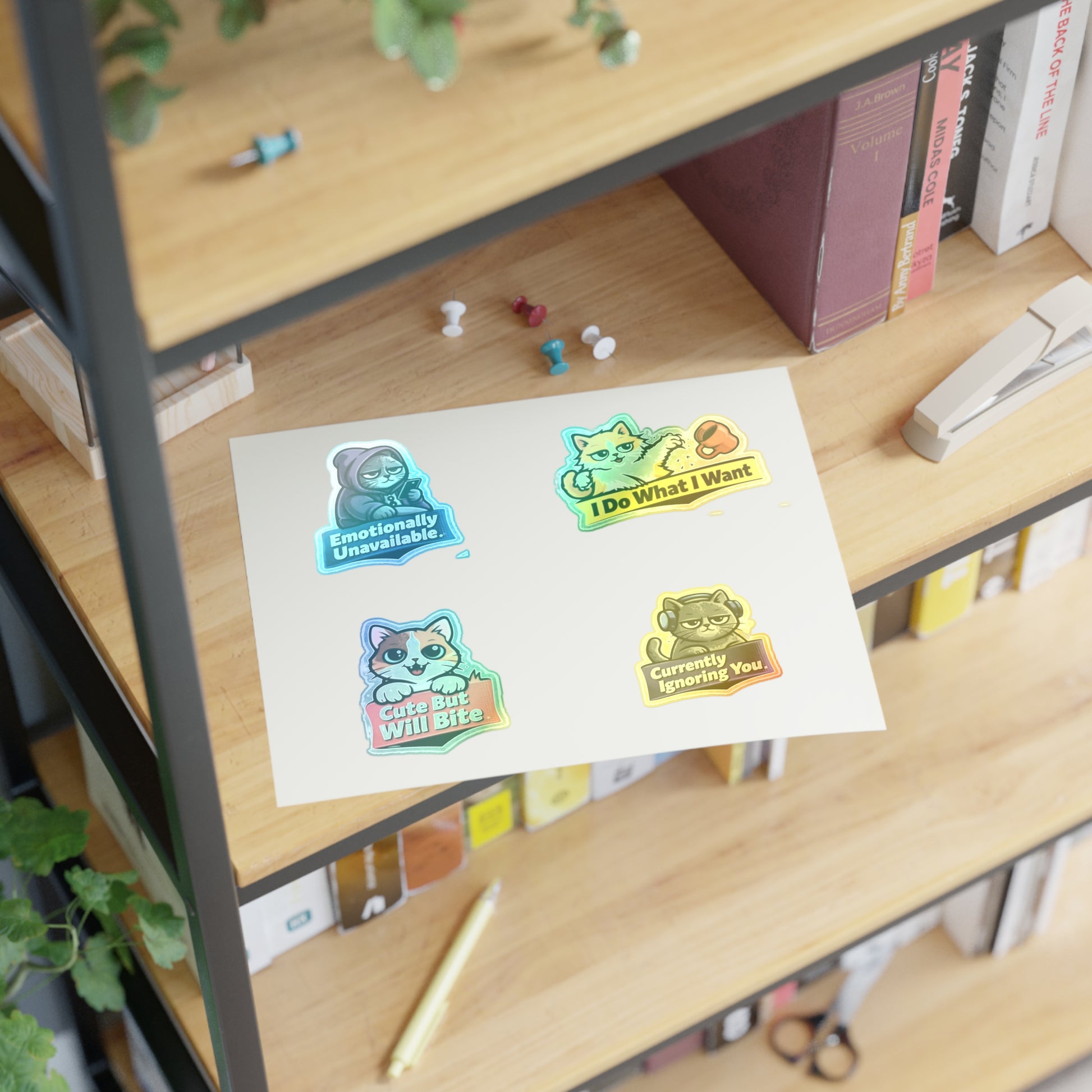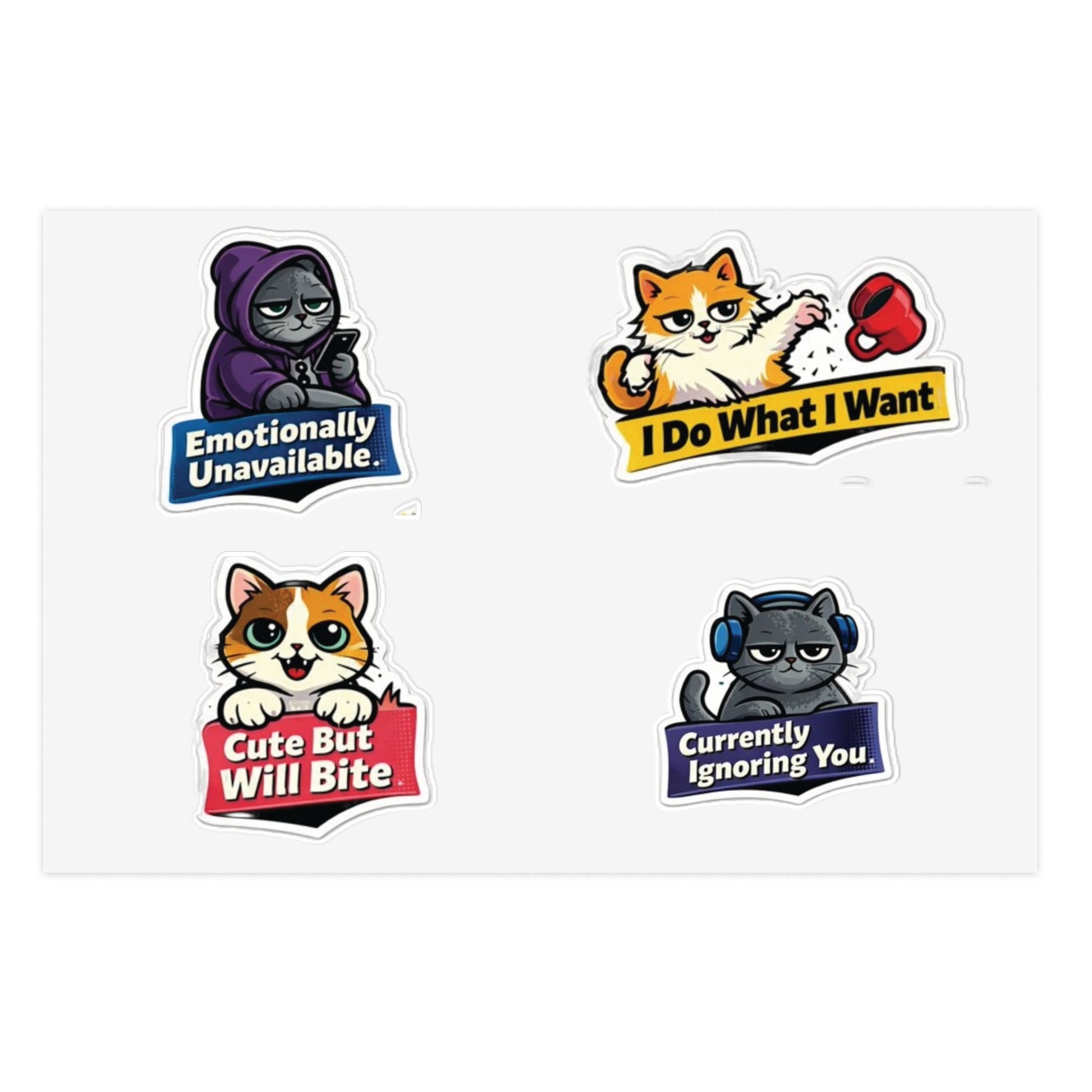 Unhinged Cat Energy Sticker Sheet — "Four Cats. Zero Manners." Funny Cat Stickers for Cat Lovers
