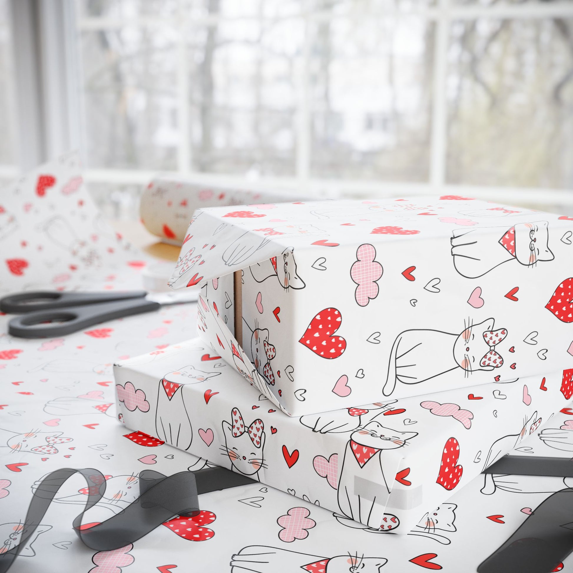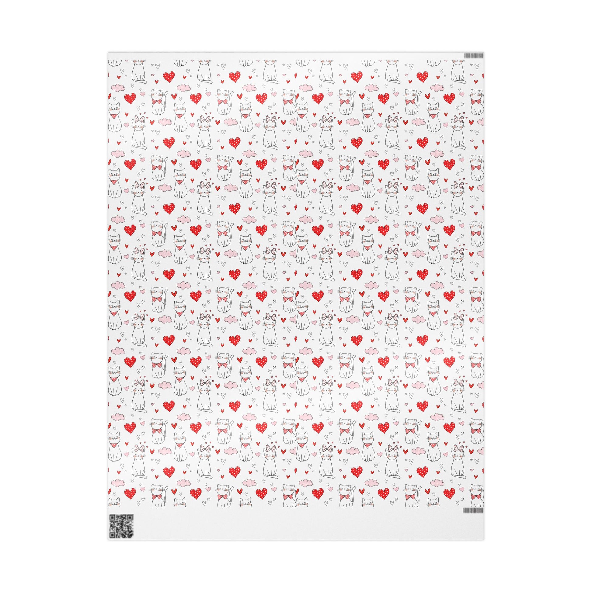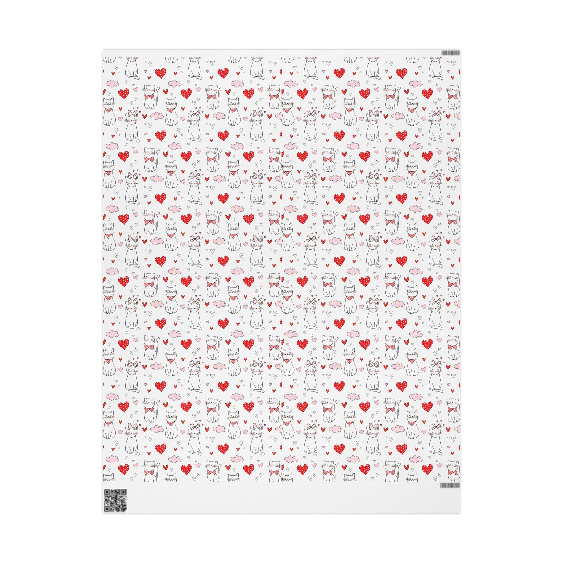 Valentine Cat & Hearts Wrapping Paper Roll — Cute Gift Wrap for Valentine's Day