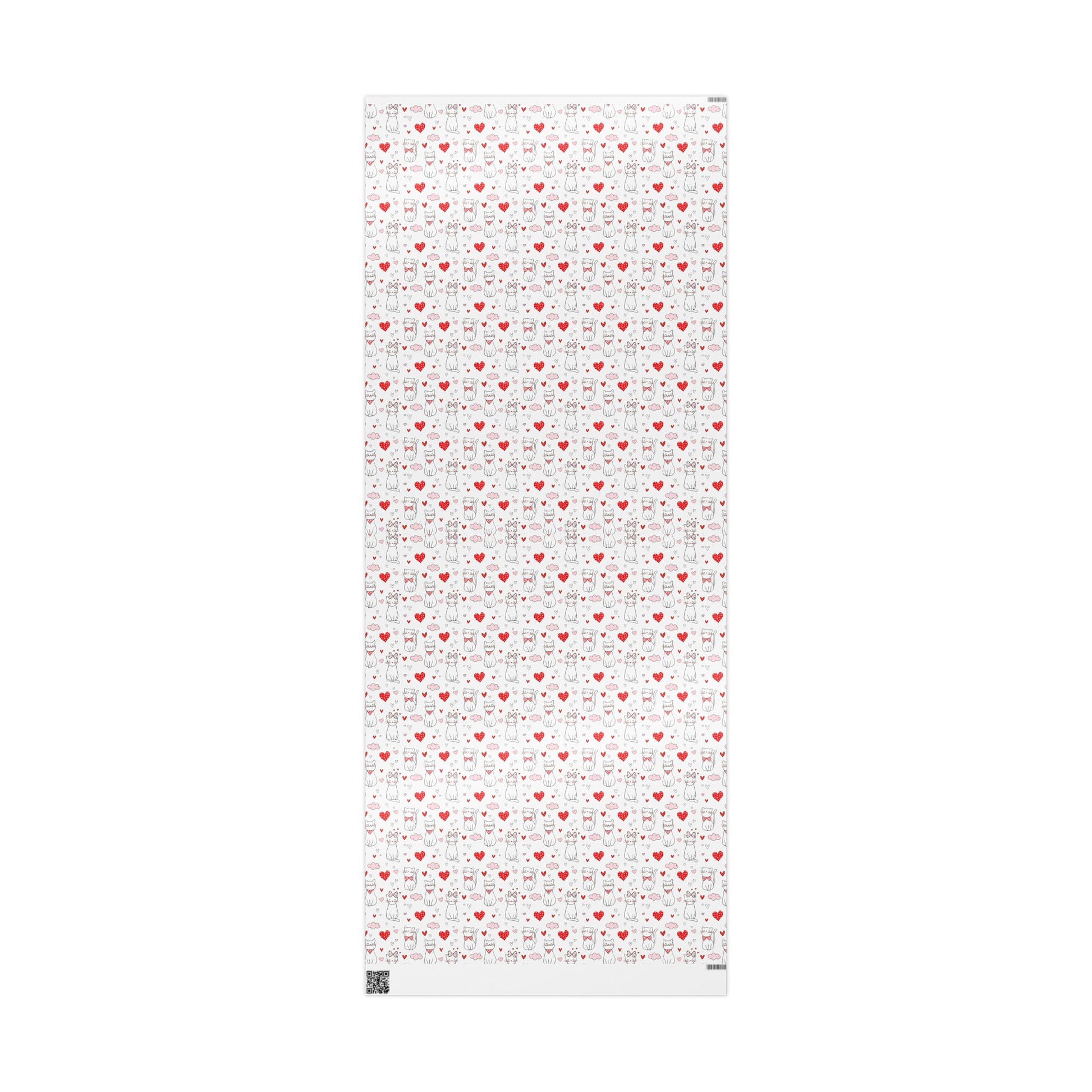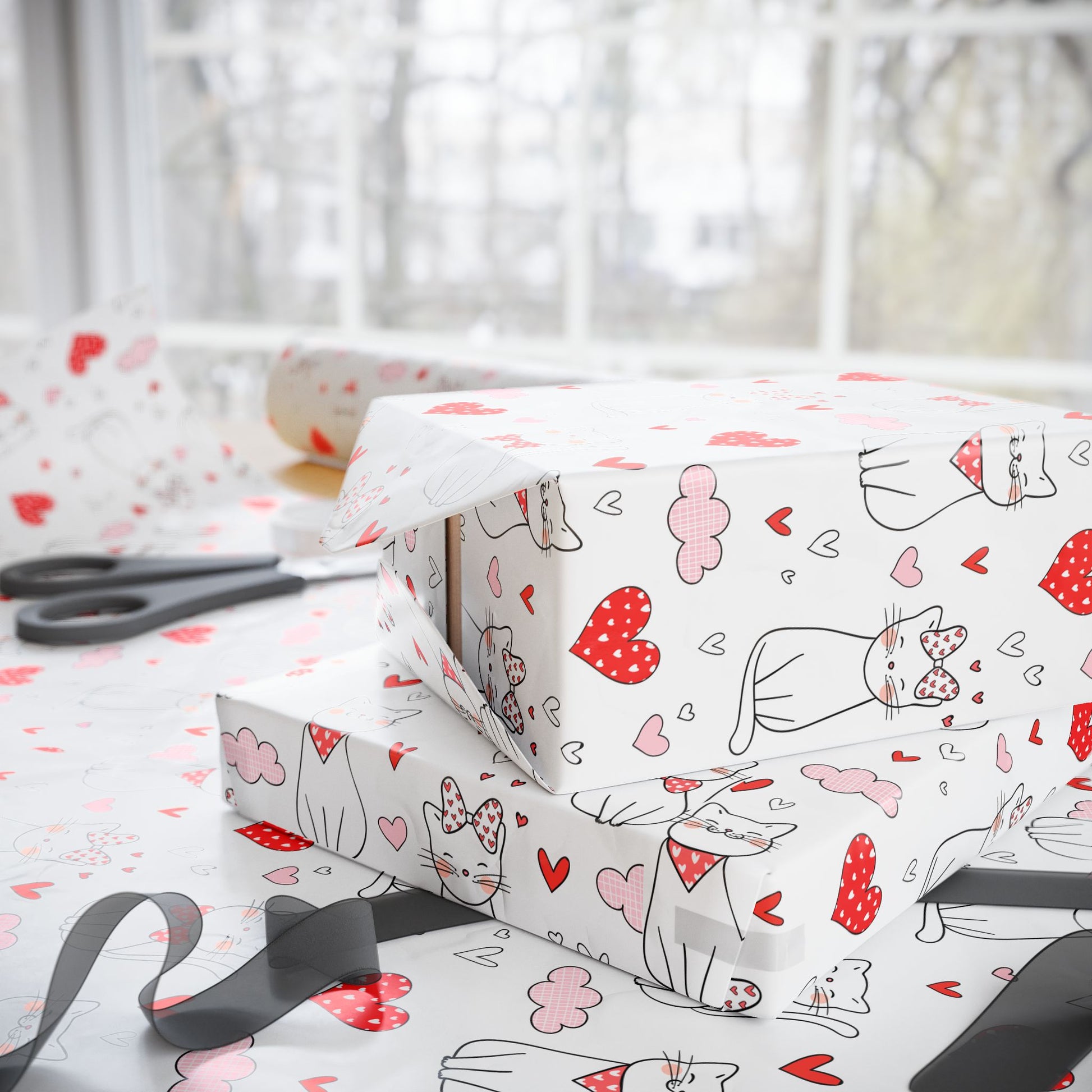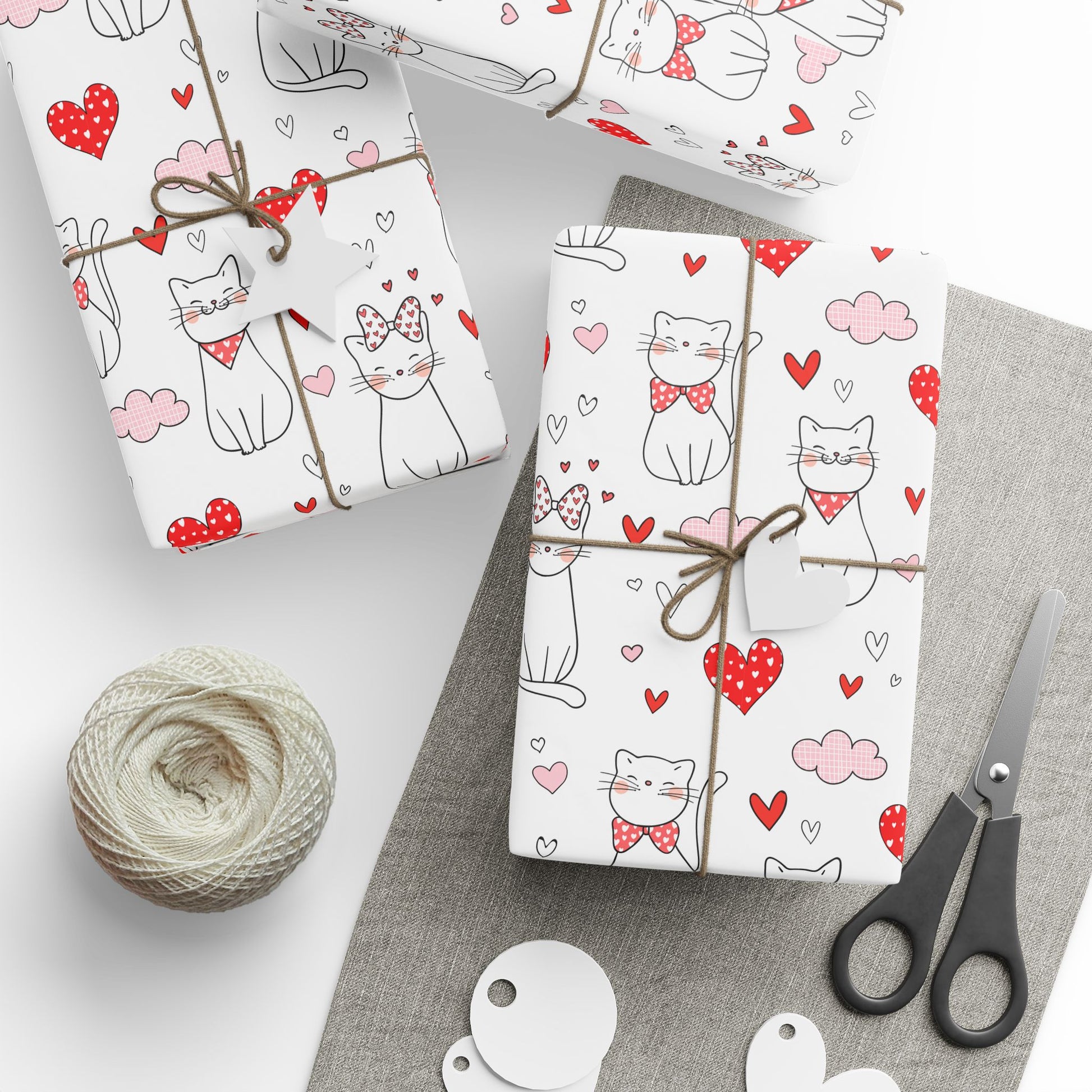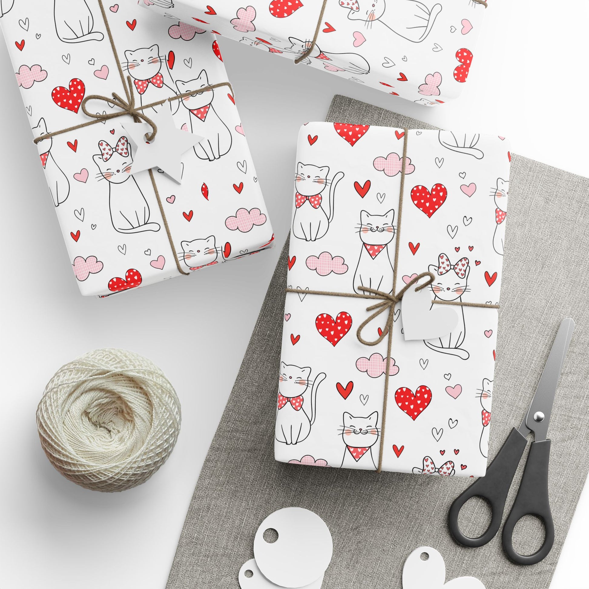 Valentine Cat & Hearts Wrapping Paper Roll — Cute Gift Wrap for Valentine's Day